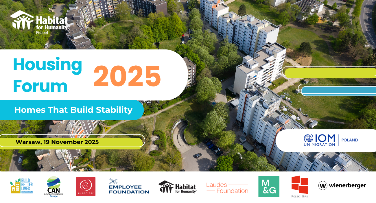 The annual Housing Forum of Habitat for Humanity Poland is a cross-sectoral event dedicated to housing, organized consistently for the past ten years. Each year, it brings together around 200 participants: policymakers, representatives of public administration and local governments, business and development sectors, social organizations, researchers, urban planners, and community activists. This year’s edition, titled “Homes That Build Stability”, will provide a platform for the exchange of knowledge, experience, and good practices on affordable housing and its role in strengthening social and economic resilience and supporting Poland’s development. Discussions will focus on affordable housing as a tool for strengthening communities and driving the development of cities and regions, including the interconnections between housing policy, climate action, and social cohesion. Participants will also examine challenges related to energy efficiency and climate change in the context of construction and the renovation of existing housing stock. Further discussions will address the adaptive reuse of vacant buildings and innovative social rental models, which can expand the availability of housing for people with diverse needs. Particular attention will be given to housing and social resilience—understood as the capacity of communities to respond to economic, climate, and demographic challenges through stable and accessible housing solutions. Another important topic will be the role of EU cohesion policy and European funding frameworks in supporting and financing housing development in Poland. The conference will be bilingual (Polish/English) and will serve as a forum for dialogue among representatives of government, business, civil society, and academia. The event will feature networking opportunities, partner presentations, and media presence. The Forum will be widely covered across Habitat for Humanity Poland’s social media channels (Instagram, Facebook, LinkedIn, X).